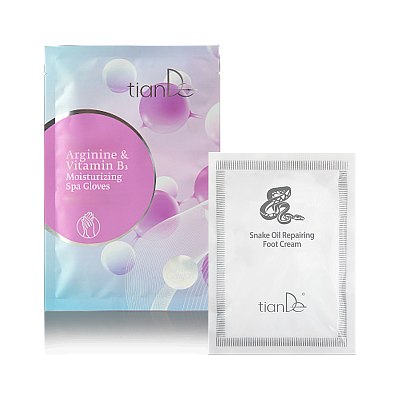 Kup nawilżające rękawiczki spa z argininą i witaminą B3 i otrzymaj w prezencie regenerujący krem do stóp z olejem węża!