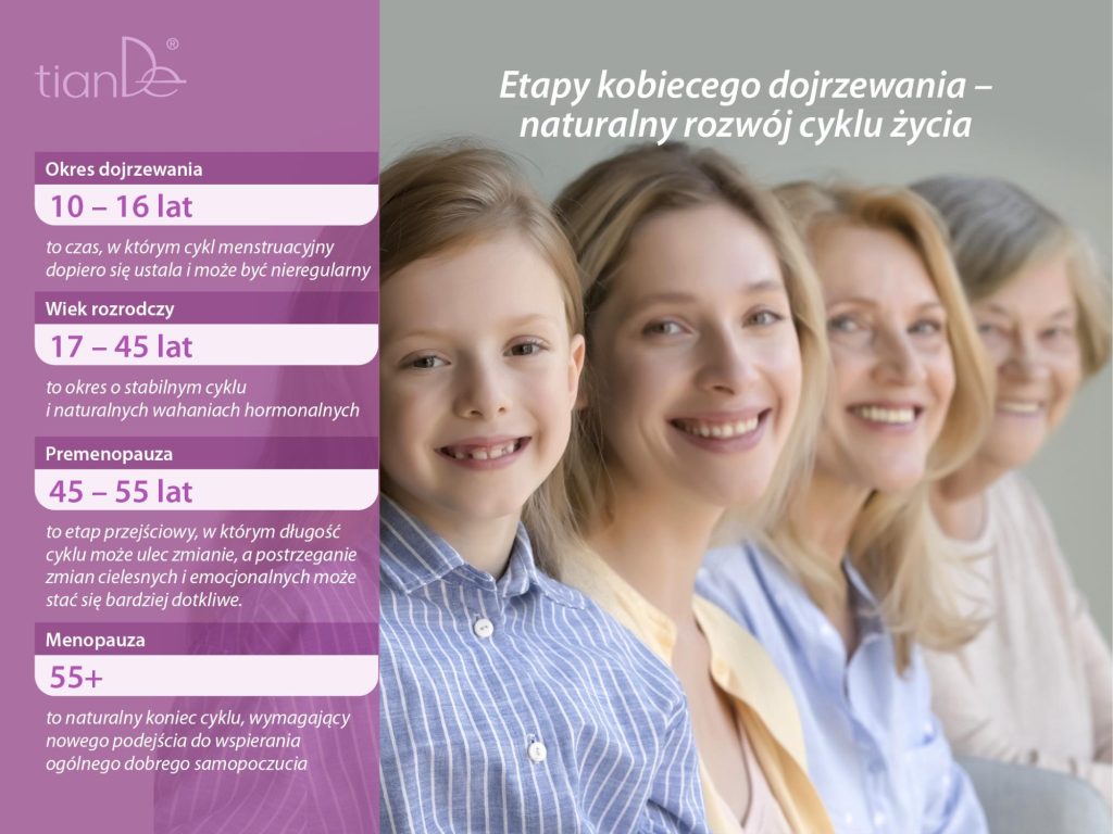 - Menopauza (po 55. roku życia) to naturalny koniec cyklu, wymagający nowego podejścia do wspierania ogólnego dobrego samopoczucia.