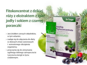 W ofercie TianDe takim produktem jest preparat z serii Dr. Taiga – fitokoncentrat z dzikiej róży z ekstraktem z igieł jodły i sokiem z czarnej porzeczki.