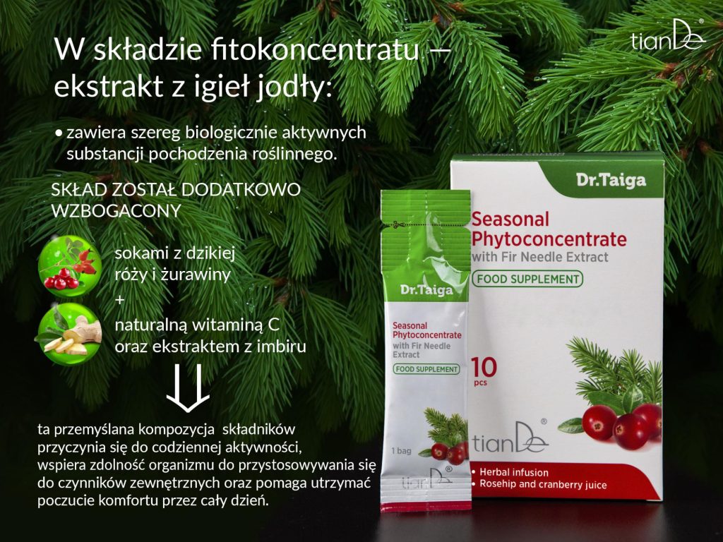 Specjaliści firmy TianDe opracowali suplement diety — sezonowy fitokoncentrat z ekstraktem z igieł jodły z serii Dr. Tajga.
