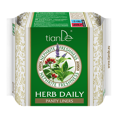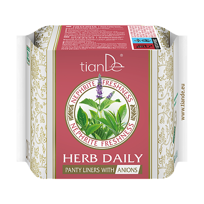 Wkładka higieniczna Nefrytowa Świeżość na bazie ziół z anionami niezawodnie przylega do bielizny i nie odkształca się w ciągu dnia. O Twój komfort zadba naturalny kompleks ziół zawierający wyciąg z mięty pieprzowej i liści kamelii chińskiej.